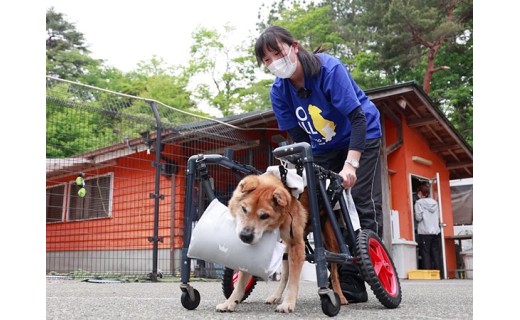 心臓が弱ってきていたため、オレンジ犬舎で心臓の収縮の力を強くする薬など、3種類の心臓の薬と、心臓サポートのための療法食をスタッフが食べさせながらお世話をしています。少しずつ体調が回復し、自分からご飯も食べられるようになり、大好きな散歩にも行けるまで元気になりました。