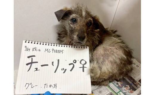 ある日、動物愛護センターから引き取る予定のワンコたちの所見がようやく終わったとき、職員さんから「瀕死の野犬を2頭保護した」と声がかかりました。職員さんが保護に向かったとき、息絶えているのではないかと思ったほど、かなり状態が悪かったそうです。保護された2頭は、親子のようでした。
