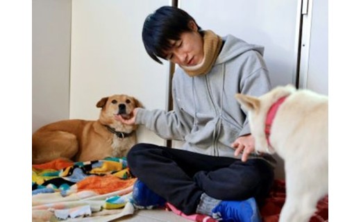 当日、里親さまは同居している同い年のご友人さまと、継承人になってくださった柴犬と暮らしておられるご夫婦さまと一緒に、神石高原シェルターから移動してきた「オルド」のお迎えに、あきる野譲渡センターへ来てくださいました。