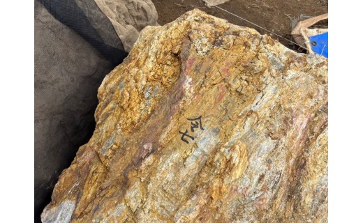 復元整備で新たに補う築石は、オリジナルの石垣の石材と区別できるよう、それぞれに墨書で復元年度を記しています。
