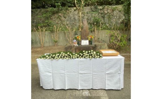 名古屋市獣医師会をはじめ、動物愛護推進員及び譲渡ボランティアの皆さまといった、犬猫に関わる多くの方々と名古屋市職員が参列し、あいさつ等の後、一同で黙とうを行い、参列者全員で慰霊碑に献花を行いました。