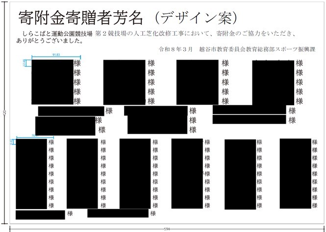 しらこばと運動公園第2競技場の入口に、寄附者のネームプレートを設置予定です。