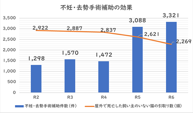 皆様の御支援のおかげで、令和5年度から「猫不妊・去勢手術補助事業」の予算を大幅に増やすことができています。