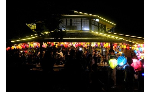 約700個のランタンが八角堂、公園、遊歩道、商店街、団地のピロティなどを優しい灯りでつないでいます。