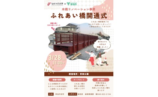 草加市とものつくり大学は連携協定を結び、草加市内の木橋をリノベーションしています。