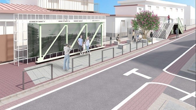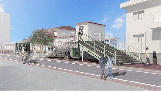 三鷹市では、JR東日本と「三鷹こ線人道橋」の記録と記憶を将来に繋ぐため、令和4(2022)年1月27日に覚書を締結しました。この覚書に基づき、階段と橋桁の一部が無償で提供され、南側階段の跡地にポケットスペースを設置することになりました。令和6年に設計を行い、令和8年3月のオープンをめざして、現在工事中です。