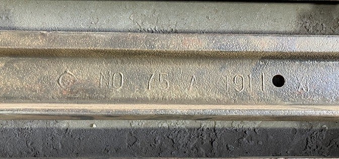 全長約90mのこ線橋は珍しく、構造材として、使用済みの古レールが使われていました。レールに記された記号からドイツで造られたレール、アメリカで造られたレール、官営八幡製鉄所で造られたレールが使われていることがわかっています。