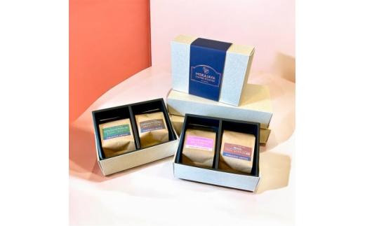 「珈琲バッグ」は5袋入りが3種類で計15袋、「珈琲豆」は160g入りが3種類(3袋)のセットです。