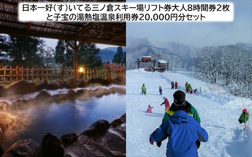 三ノ倉スキー場の1日リフト券と地元熱塩加納温泉組合に加盟している宿、山形屋で利用することができる宿泊券のセットです。