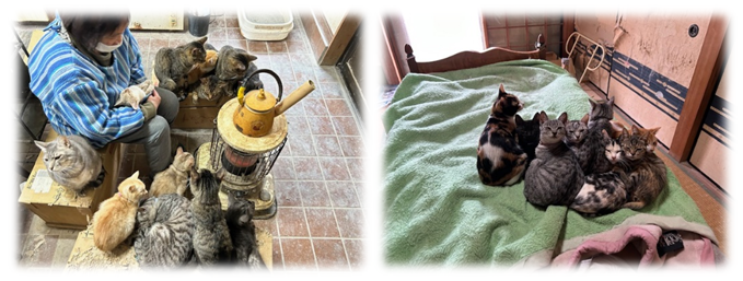 とても優しいご家族で、捨てられていたり迷い込んできたりした猫を保護しているうちに増えてしまいました。