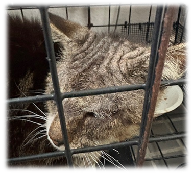 他の動物に襲われて怪我をした地域猫、毛が抜けてたくさん膿が出ていました。