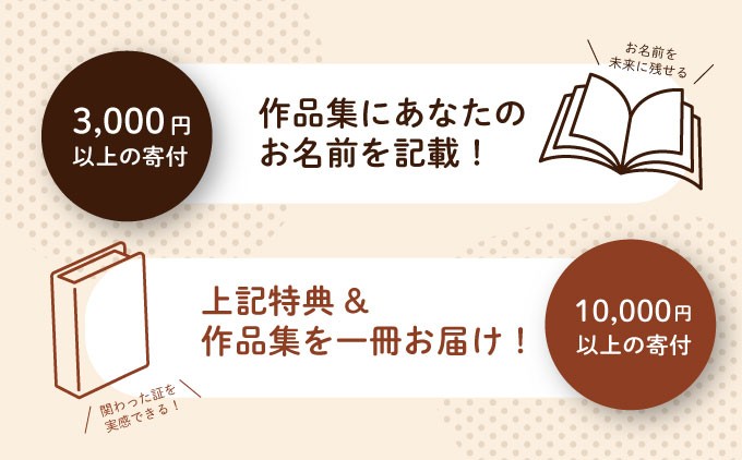 ※作品集への名前の掲載可否については、寄付手続きのアンケートにてお伺いしますので、ご希望をお選びください。