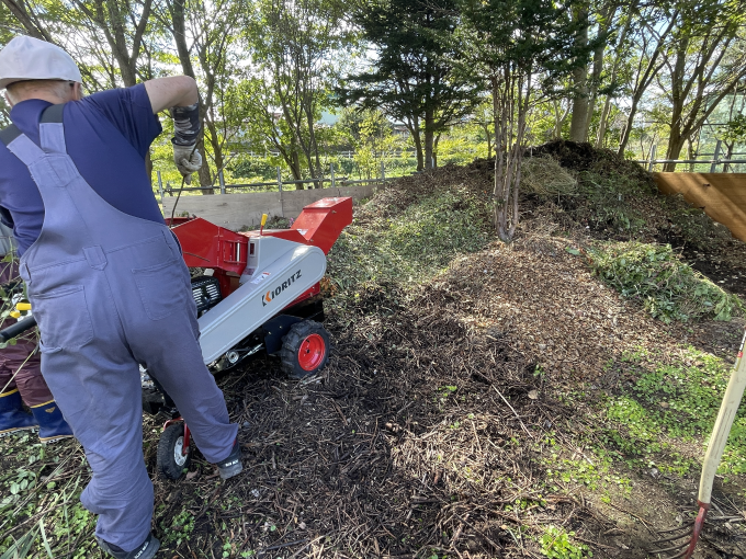 日々花摘みや枝の剪定を行っており、発生する花弁や枝をたい肥化することで再利用しています。