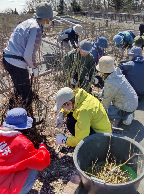 はぼろバラ園の維持のため、春の剪定から始まり、夏場の除草作業、越冬に備えての秋の葉むしり等の作業を町民ボランティアの方々に行っていただいています。