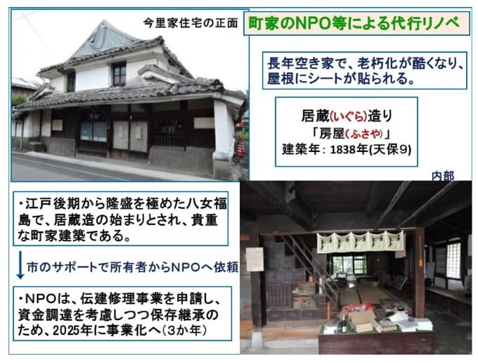 修理した後は町家ホテルなどに活用し、賑わいを取り戻します
