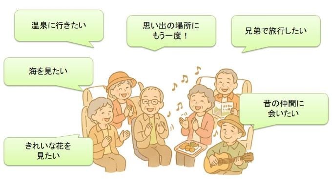 そこで、私たちは高齢者の「行きたい」「出かけたい」「楽しみたい」という想いを実現するため、マイクロバスの購入を目指しています。