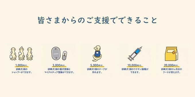 一人でも多くの困難を抱えた人たちが犬を通して笑顔になれますように。皆さまのご協力をお願いいたします。