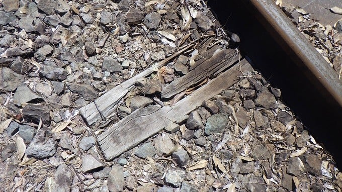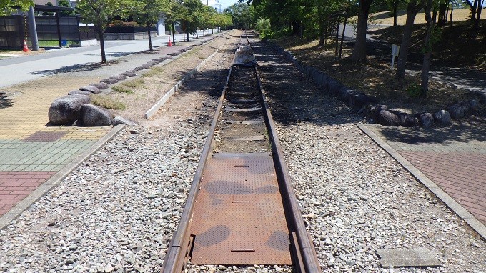 蒸気機関車(いもこ列車)はレールの上を走っていますが、レールの基礎は枕木です。