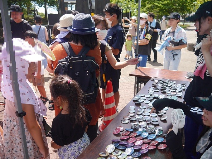 いもこ列車に乗車した人限定の缶バッジをプレゼント!