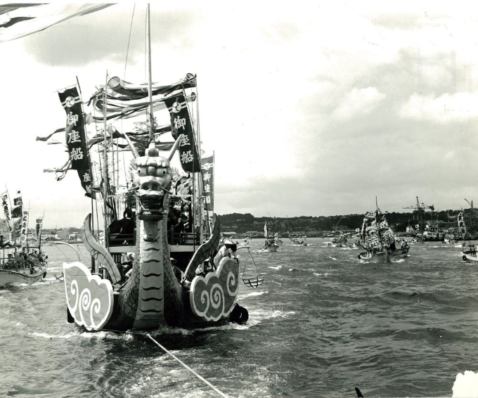 前夜祭では花火の打ち上げ、本祭では世代間を超えた市民の踊り「よしこの塩竈」を中心とした陸上パレードも行われますが、メインイベントは『日本三大船祭り』のひとつに数えられる「神輿海上渡御」です。
