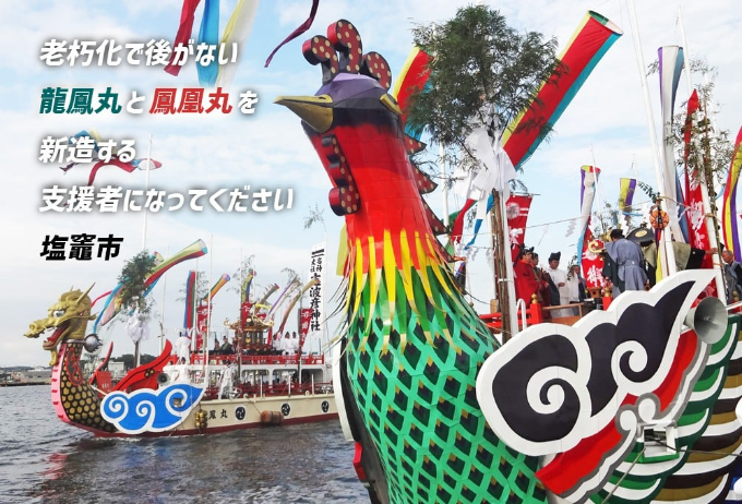 日本三大船祭り「塩竈みなと祭」に欠かせない「顔」とも言うべき「龍鳳丸」と「鳳凰丸」の新造プロジェクトの支援者になっていただきたいと思っております。