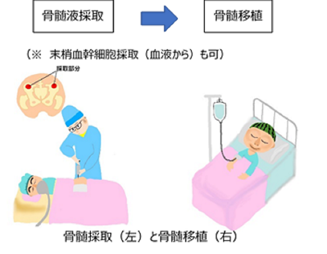 骨髄移植は、血縁者間の移植と日本骨髄バンクに登録された方からの移植があります。