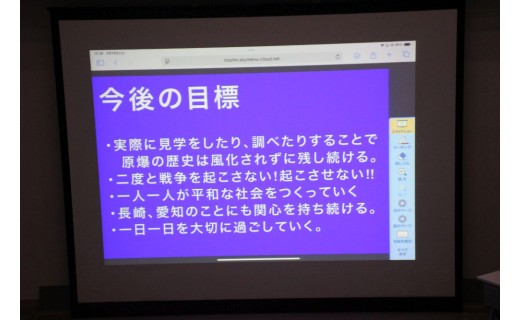 ・研修成果を全校生徒へ共有し、学校全体で平和について考える機会をつくることができた。