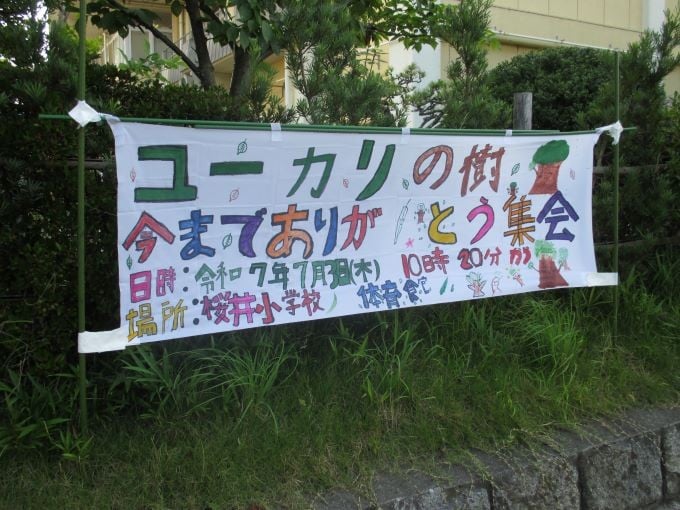 令和7年7月3日、桜井小学校では地域の方や卒業生などを招き、「ユーカリの樹 今までありがとう集会」を開催しました。