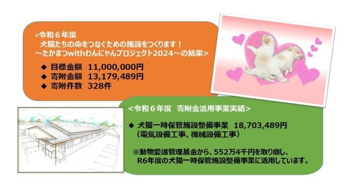 2024年度 犬猫たちの命をつなぐための施設をつくります! 【たかまつwithわんにゃんプロジェクト2024】 の実績