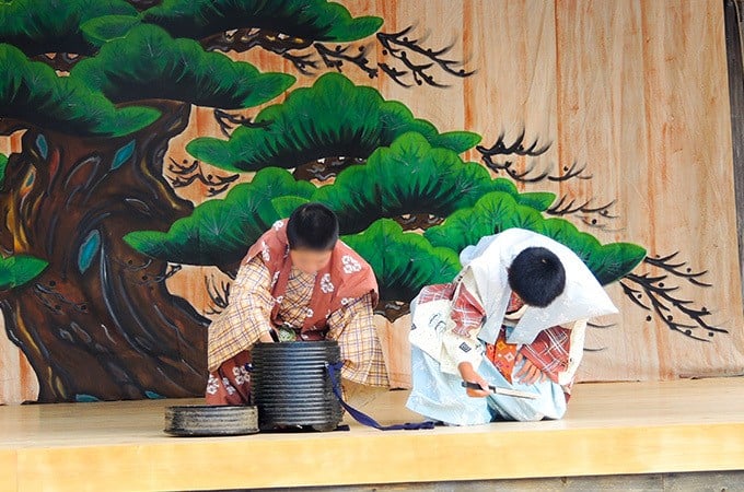 高志狂言の演技は、独特の言い回しや動作、衣裳が特徴的です。演目は比較的短く、コミカル内容で観客に親しみやすく、地域の人々に愛されてきました。