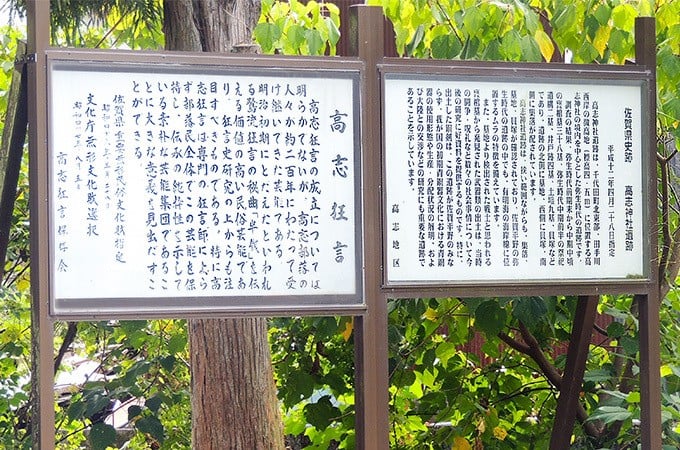 佐賀県神埼市高志地区に伝わる伝統芸能で、江戸時代に栄えた鷺流(さぎりゅう)狂言を受け継いでいます。