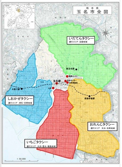 玉名市乗合タクシーの運行維持を応援いただき、誰もが快適に外出できるまちづくりを!