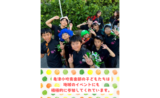 亀津小学校吹奏楽部の子どもたちは、音楽が大好きで、地域のイベントなどにも積極的に参加し、毎日一生懸命練習していると聞いています。