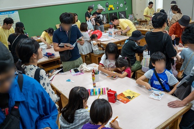 大学・企業・クリエイターなどの様々な主体と連携し、絵本販売やワークショップなどのたくさんのブースを設置。絵本のまち最大のイベントです。
