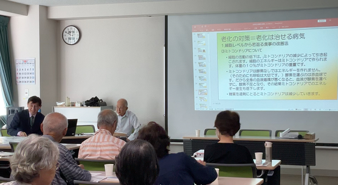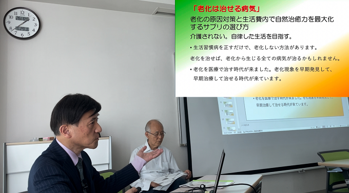 アンチエイジング実践会が実施主体となり、「老化は治せる病気」を教材とした講座を周東医師並びに岩部薬剤師の協力を得て開催いたしました。