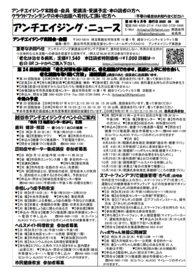 『老化は治せる病気』の改訂版の発行及びアンチエイジング実践に関する市民活動