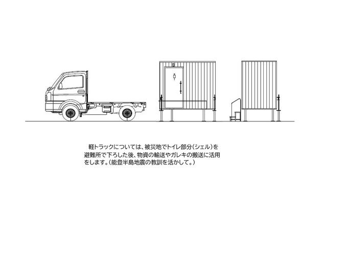 トイレユニットを荷下ろした後の軽トラックは、災害ごみの搬入や物資の輸送など、他の用途にも活用できます。