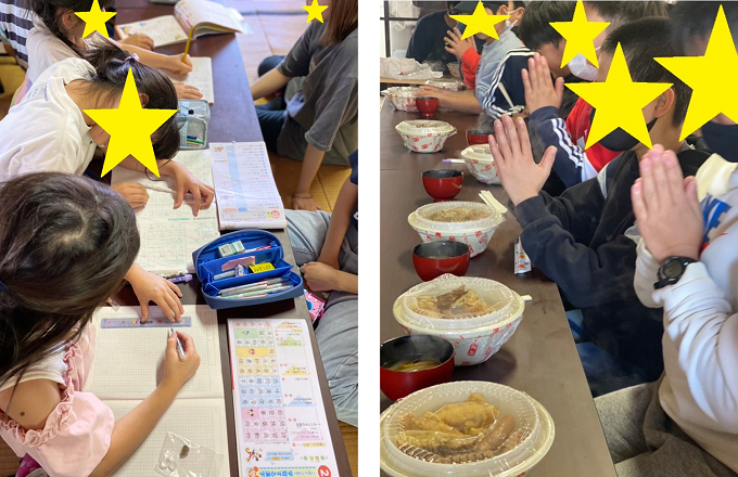 こどもたちは、放課後や休日に地域のこども食堂に集い、みんなでご飯を食べたり、勉強をしたり、遊んだりしながら、安心して楽しく過ごしています。