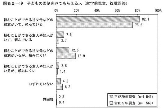 その背景には、核家族化で祖父母との心理的距離が生まれていたり、祖父母世代でも就労者が多いこと、コロナウイルス感染症拡大をきっかけとした社会変動などによるものが要因となっていると考えられます。