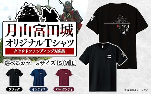 左胸に尼子家紋 背中に月山富田城ロゴ 左袖に「尼子物語」墨書を施したTシャツです。
