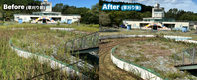 プレオープンに向け、施設の残置物などの整理・撤去作業、草刈りなど地域の皆様にも気持ちよく安心して利用していただけるよう利用環境を整備するための清掃・修繕作業を行います。