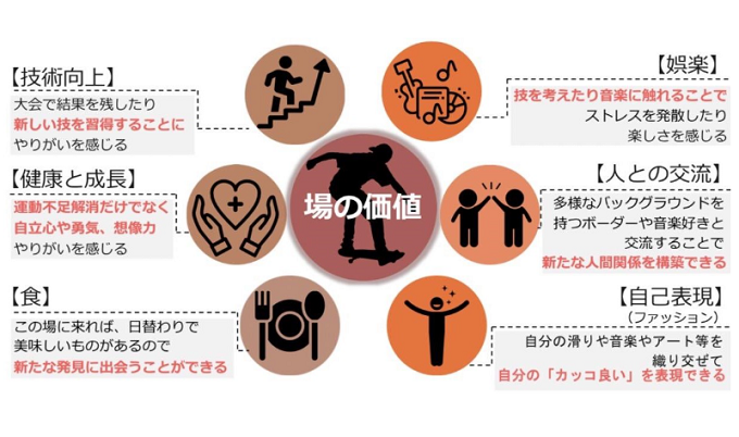 市場調査によると、スケートボード市場は年率3.7%で成長を続け、2028年までに1.56億ドル規模に拡大する見込みです。また、ライブエンターテインメント市場も2023年に過去最高の6408億円を記録し、さらなる成長が期待されています。この追い風を活かし、町内だけでなく町外からの観光客も集めていきます。