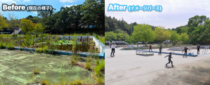 イメージ:施設を清掃し、人が集える場所やスケートができる設備を設置したいと考えています。