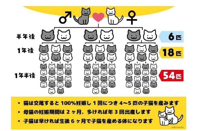 13年前、家の周りに住みついたメス猫が子猫を産み繁殖しだしたのをきっかけに、猫の繁殖の速さの恐ろしさを知り、猫の不妊手術の大切さを考える ようになりました。