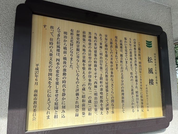 中でも「松風樓」は明治時代に建築され、100年以上観音町のシンボルとして親しまれてきました。平成25年には国登録の有形文化財に指定されています。