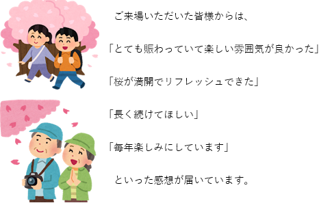しかし、近年は人件費や物価高騰の影響により運営費が増加しており、さくらまつりをこれまでと同じ規模で継続することが難しくなっています。多くの人々の心に残るこのイベントを続けるために、皆様のご支援をお願いしたいと考えています。