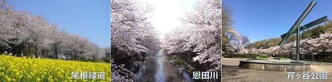 町田市では毎年、さくらが見頃を迎える3月下旬から4月上旬にかけて、尾根緑道、芹ヶ谷公園、恩田川の3会場で「町田さくらまつり」を開催しています。各会場ごとに出店や展示、趣向を凝らした様々な企画等を行い、どの会場もご来場いただいた皆様が楽しめるイベントとなっています。