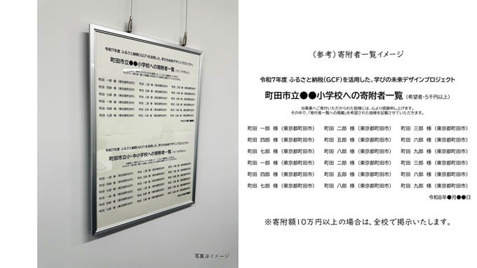 ・学校を指定しない寄附:10万円以上の場合(町田市立小・中学校で全校で掲示)