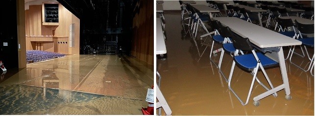 そよ風ホールについても、施設1階部分のほとんどが床上浸水し、床や壁、舞台設備など被害は多岐にわたり、深刻な状況となっています。