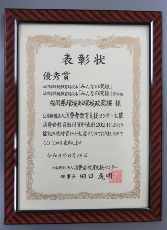 「みんなの環境」は、(公財)消費者教育支援センターが実施する「消費者教育教材資料表彰2024」において優秀賞を受賞しており、その内容が高く評価されています。